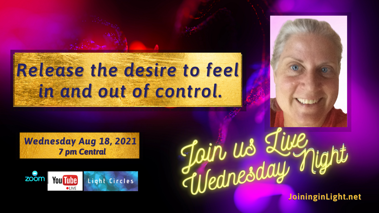 by seeing how it plays and no longer choosing to feel helpless to the play in consciousness. This is how the ego avoids spiritual awakening and enlightenment. If you experience feeling in or out of control know that you have taken a dive into the dream bubble of denial of Light and that you have the all power to back right out of it!! Instead of wanting the experience of feeling in or out of control, look to see that there is a desire for control as experience and see that the feeling is relished experience (by the ego)t! Once the subconscious desire for the experience of control and out of control is released, you will see that there is no such thing as control or out of contol, there is just peace, your natural state.